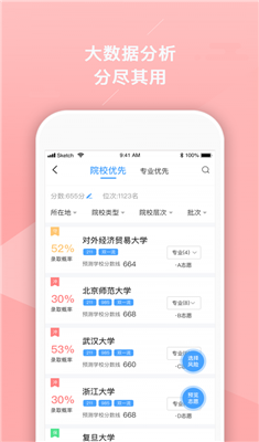根據(jù)考生輸入的高考分數(shù)、位次、生源、批次等信息,進行院校及專業(yè)錄取概率的預測。
