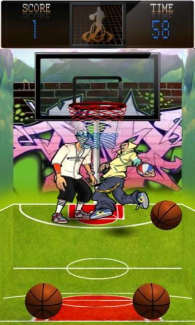 這是一款很簡單的投籃游戲,只需要滑行籃球的軌跡,瞄準(zhǔn)籃筐,即可。