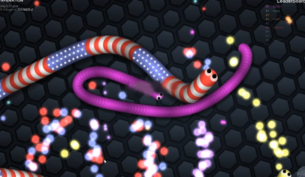 《蛇蛇大作戰(zhàn) slither.io》是一款結(jié)合了Agar.io和貪吃蛇的玩法的休閑游戲。游戲的玩法類似于經(jīng)典的貪吃蛇游戲。是一款簡單但是樂趣多多的游戲,但是需要玩家們有一個不錯的操作能力和迅速的反應(yīng)能力了。線上對戰(zhàn),但侵略性比Agar.io低。在游戲中玩家會化身為一只小小的蛇,在比賽中通過吃掉小亮點(diǎn)來使自己變得更為強(qiáng)大!