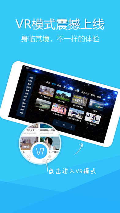 -支持高清VR視頻在線點播、在線搜索、離線下載及VR全景視頻跨平臺分享展示,炫酷VR視頻一鍵分享至微信、微博、QQ、朋友圈。