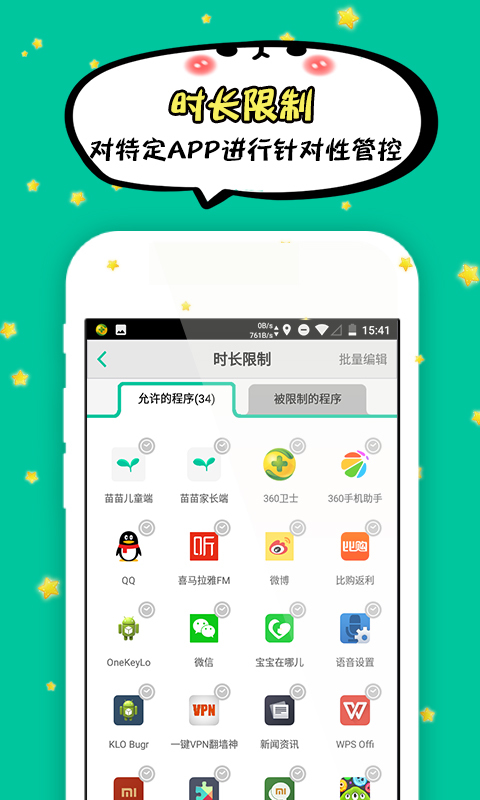 該應(yīng)用為家長(zhǎng)端,由家長(zhǎng)安裝使用。另有兒童端,需安裝在孩子手機(jī)中,兩者鏈接綁定后方可正常使用。