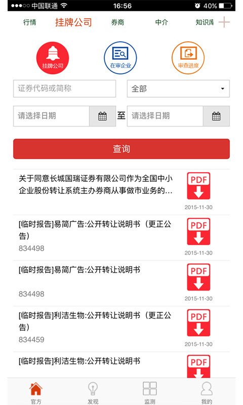 功能亮點(diǎn):官方、觀點(diǎn)、發(fā)現(xiàn)、我的官方:交易行情、掛牌、定增、做市新三板、相關(guān)機(jī)構(gòu)一目了然。
