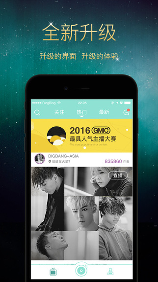 匯集千萬粉絲,超過1000個明星藝人,5000個網(wǎng)絡(luò)紅人,10000個大學(xué)生,10萬個帥哥和美女,來自全球的華人和留學(xué)生每天24小時不中斷視頻直播,與偶像面對面互動,你的ta從未如此真實,如此靠近你。