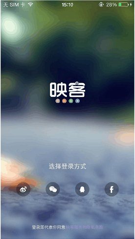1、打開軟件,進入登錄界面,四種登錄方式,從左到右依次為微博、微信、QQ、Facebook,任選一種即可。