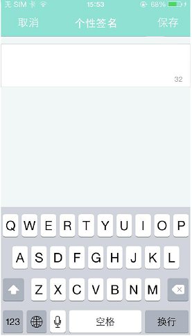 3、點擊個人簽名,跳轉(zhuǎn)到編輯個性簽名 界面(個性簽名最大字數(shù)為32字,超過輸入無效)點擊“保存”按鈕可保存相關(guān)修改,點擊“取消”按鈕回到編輯資料界面。