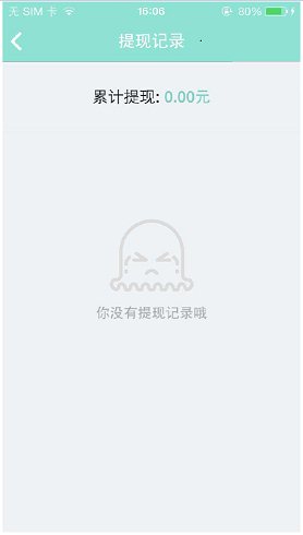3、提現(xiàn)頁面左上角有“提現(xiàn)記錄”按鈕,點擊進入可查看相關(guān)提現(xiàn)記錄(圖為無提現(xiàn)記錄的界面)。