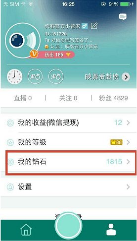 1、在個人主頁界面,有個“我的鉆石”按鈕,點擊可跳轉(zhuǎn)至“我的鉆石”頁面。