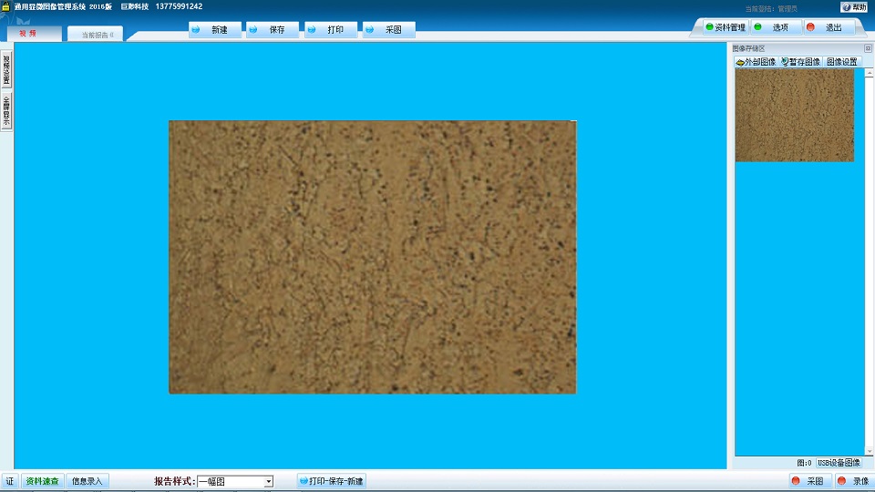 通用顯微鏡圖像管理系統(tǒng)(巨渺軟件),支持各種類型的顯微鏡(金相顯微鏡、偏光顯微鏡、體視顯微鏡等等),通過攝像裝置獲取顯微鏡下圖像,對圖片進行采集,測量,錄像等??纱蛴z查、檢測、信息管理等各種類型自定義報告。實現(xiàn)對圖像,信息資料的存儲,管理,查詢,統(tǒng)計等,通過本系統(tǒng)可大大提升顯微鏡圖像及信息資料的管理能力。