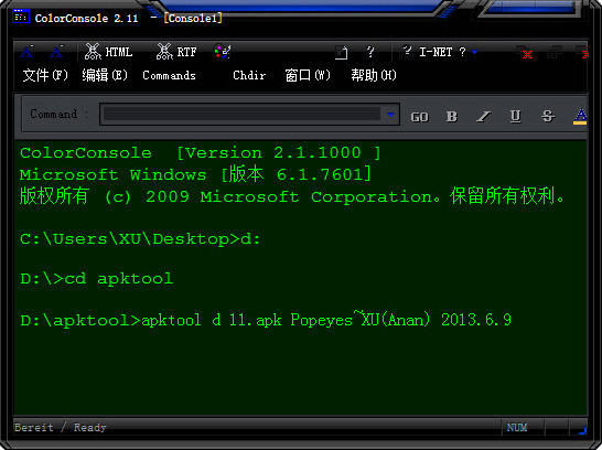 ColorConsole 可以按照Windows的習(xí)慣進行粘貼復(fù)制操作,當(dāng)把文件拖到命令提示符里,路徑還會自動生成。