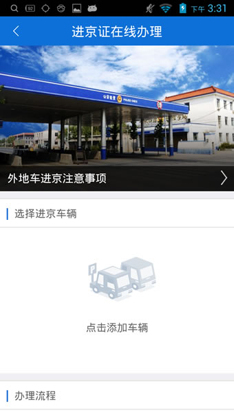 步驟為,先添加車輛,然后點擊車輛進入以后,完善機動車信息和綁定駕駛證。以上操作完成即可在線辦理進京證了。