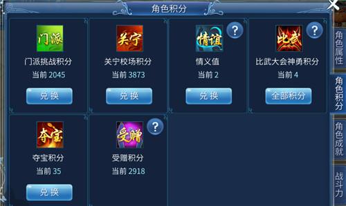 該積分就是進行一些活動獲得的積分,積分可以分別兌換不同所需要的東西,例如進行【門派挑戰(zhàn)】可以獲得積分兌換【金剛鉆】。