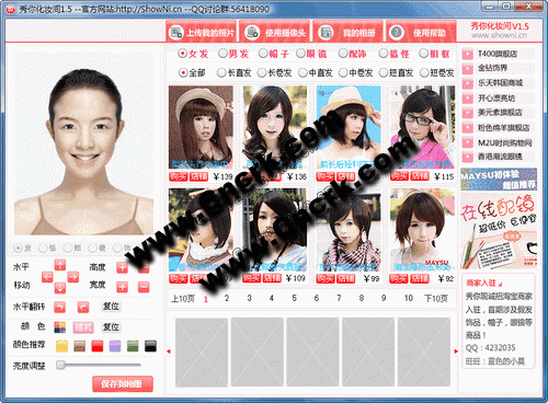 引領(lǐng)時(shí)尚潮流,你做自己的形象設(shè)計(jì)師,上傳自己的照片,您就可以在這里 試戴假發(fā)、帽子、眼鏡和精美飾品,購買前就可以輕松的挑選到真正適合您風(fēng)格的 商品。同時(shí)您也可以對(duì)圖片進(jìn)行美化,添加搞笑圖片,精美相框。將購物和娛樂 結(jié)合,就是秀你化妝間帶給您的不同體驗(yàn)。秀你,等您來秀!