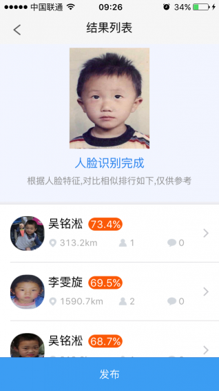 ·人臉照片實時掃描,比對結(jié)果及時推送,讓無助的心不再孤獨等待!·隨拍自動獲取疑似走失孩子特征(性別、年齡、發(fā)現(xiàn)地點等),一鍵發(fā)布,關(guān)注從未如此簡單!
