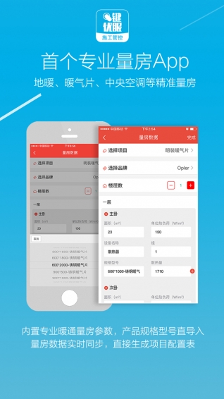 App預(yù)設(shè)不同暖通項(xiàng)目差異化量房參數(shù)