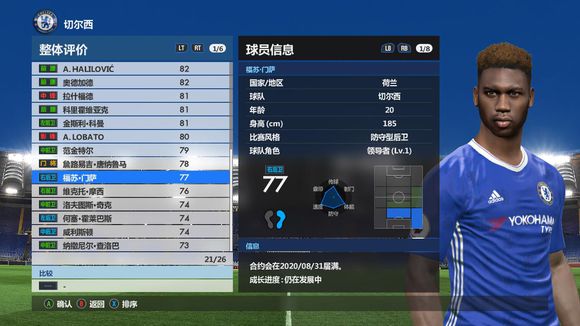 這貨。這貨,強(qiáng)推,正兒八經(jīng)的杰拉德繼承人。全面的嚇人,能力那一欄全是綠的,沒有任何缺點(diǎn),我一開始選中他的時(shí)候,我也不敢相信。一個(gè)球員怎么可能毫無缺點(diǎn)。個(gè)高體壯,無短板,攻防俱佳,正正經(jīng)經(jīng)的全能中場(chǎng)代言人。