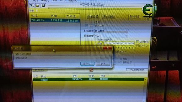 好了,內(nèi)存地址出來了,雙擊它后,界面下面會(huì)出現(xiàn)一行地址,雙擊最右側(cè)的數(shù)字,如圖,彈出的框框內(nèi)輸入你想要改的數(shù)字!再確定!好了,切換回游戲