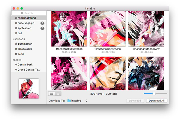 InstaBroMac版的軟件功能:1、[新]用戶、標簽和地點。添加你所需要的資源
