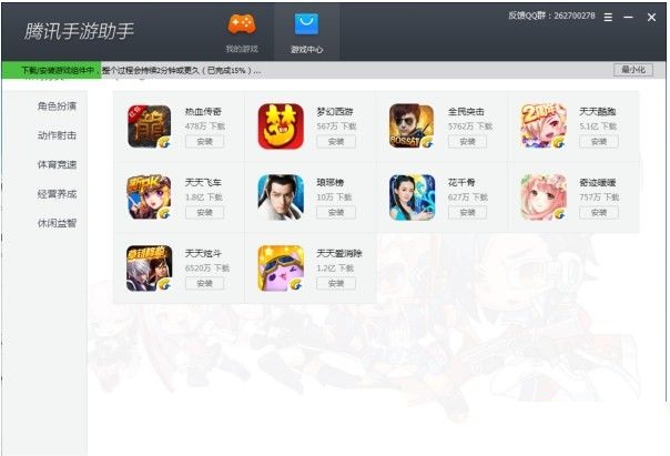 5、打開(kāi)騰訊手游助手界面,耐心等待組件下載和安裝