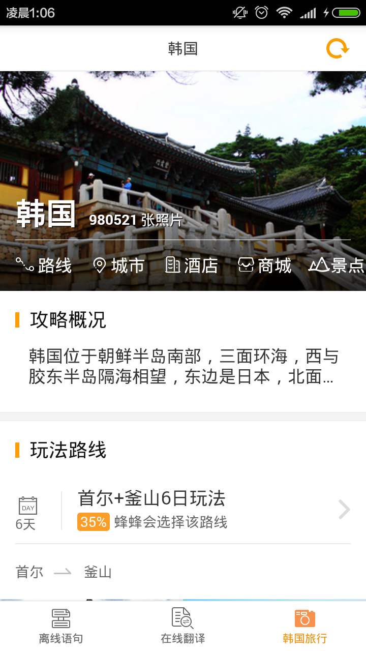 真人發(fā)音,離線使用,真正幫助你的韓國旅游。內(nèi)容包括韓國旅游中的交通、住宿、購物、景點(diǎn)等基本信息, 還有韓國當(dāng)?shù)氐某鞘芯包c(diǎn)、飲食文化、娛樂購物等地道信息, 語句中韓文可見, 點(diǎn)擊即可發(fā)音, 是你真正的韓語翻譯官。