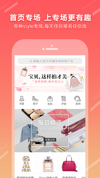 1、新增首頁專場(chǎng),寶寶們可以天天報(bào)名參加啦~2、新增商品曝光(上首頁)功能,聽說看到的人會(huì)很多哦!