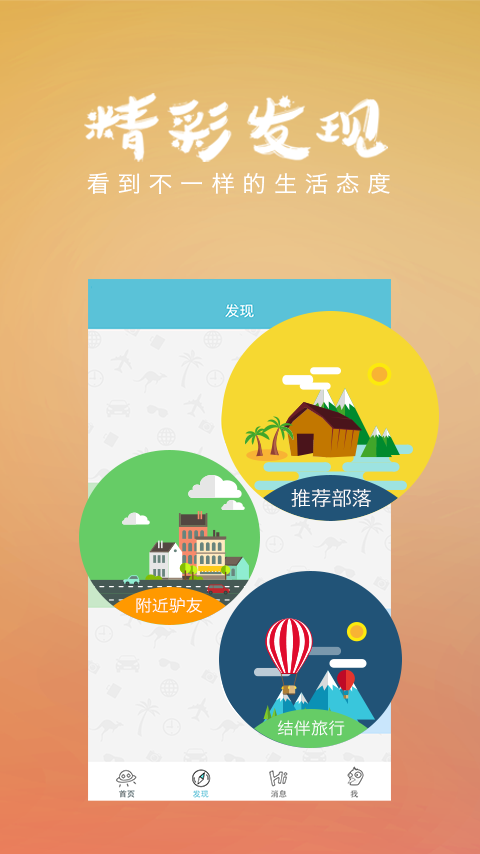 升級隊長導(dǎo)航團隊出行,告別沉悶孤獨的旅程,多人語音視頻對講互動,暢聊徒步,夜跑,騎行,露營,攀巖,登山,賽車,自行車,馬拉松等,無論去哪兒藝龍馬蜂窩途牛驢媽媽網(wǎng)Airbnb,還是美國日本臺灣韓國境外游,都可以遇見一場美麗的邂逅,行者一直在路上!