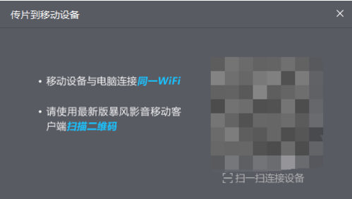 二、打開傳片助手主界面后,使用手機或平板電腦,打開暴風影音移動app,通過掃一掃進行連接。(演示手機為iPhone)