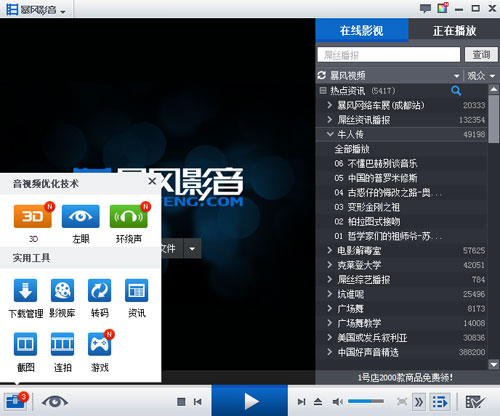提供720P、1080P真高清在線視頻1M帶寬流暢播放720P在線高清視頻暴風皮膚,賞心悅目的觀賞體驗