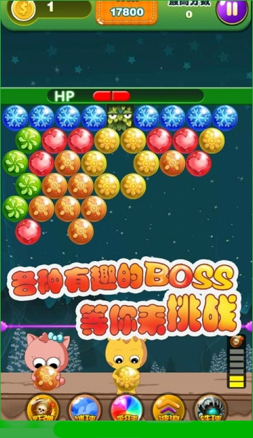 史上最華麗,最流暢的泡泡龍游戲。在全民泡泡大作戰(zhàn)游戲中,除了提供最經(jīng)典的泡泡龍關(guān)卡,還加入了前所未有的BOSS戰(zhàn)模式。每個場景都有不同的終極BOSS等你挑戰(zhàn)。在游戲中賺取金幣,使用各種新奇道具,用神操作打BOSS,體驗極致的爽快感。前所未有的泡泡龍玩法與體驗,盡在全民泡泡大作戰(zhàn)。