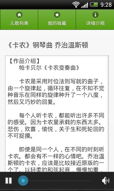 本軟件精選西方古典音樂的主要作品,您可以直接在手機(jī)上隨時(shí)聆聽我們精選的古典音樂,同時(shí)還可以通過作品、作者和演奏者的介紹,幫助您一步一步的邁入古典音樂的殿堂。歡迎每一個(gè)喜歡古典音樂的網(wǎng)友。不管你是喜歡巴洛克、浪漫主義還是現(xiàn)代音樂,也不管你是專業(yè)音樂家還是未入門的聽眾,都會(huì)在這里找到各自的知音。【更新日志】