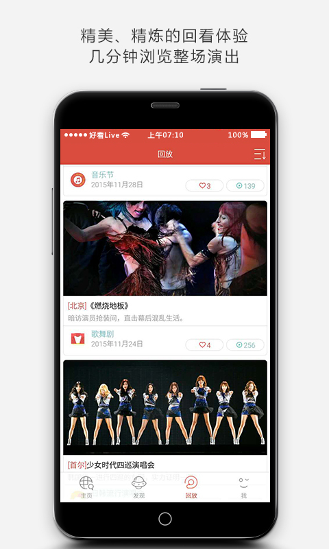 “好看Live”是首款專注于全球熱門文化演出活動(dòng)的體驗(yàn)式移動(dòng)入口,在這里,除了發(fā)現(xiàn)精彩演出項(xiàng)目,還可以對(duì)演出現(xiàn)場進(jìn)行實(shí)時(shí)在線圍觀及精彩瀏覽回看!不管你喜歡搖滾、話劇音樂劇、流行偶像演唱會(huì)、舞蹈、復(fù)古市集或者戶外狂歡節(jié)……有了“好看Live”,即刻通往全球精彩演出現(xiàn)場!【軟件特色】