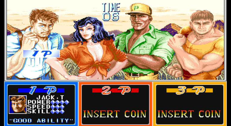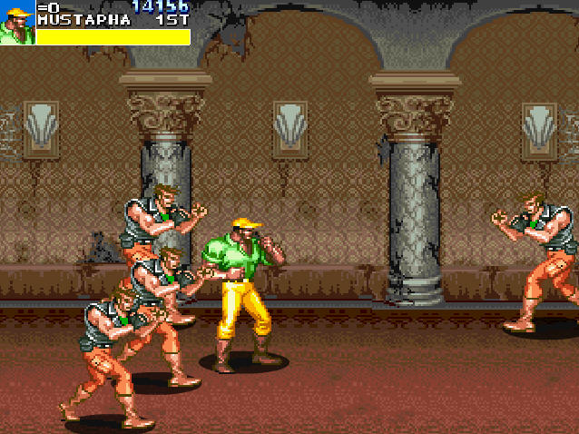 《恐龍快打(CadillacsandDinosaurs)》是一款經(jīng)典的街機(jī)游戲。該款游戲有四個(gè)角色可選,最多可以支持三個(gè)人玩。投一個(gè)幣可以選擇一個(gè)角色,每個(gè)角色都有兩條命。該游戲?qū)儆诿半U(xiǎn)闖關(guān)型,總共有八關(guān)。每關(guān)關(guān)底有一個(gè)Boss(俗稱“大人兒”),打敗他就可以進(jìn)入下一關(guān)。