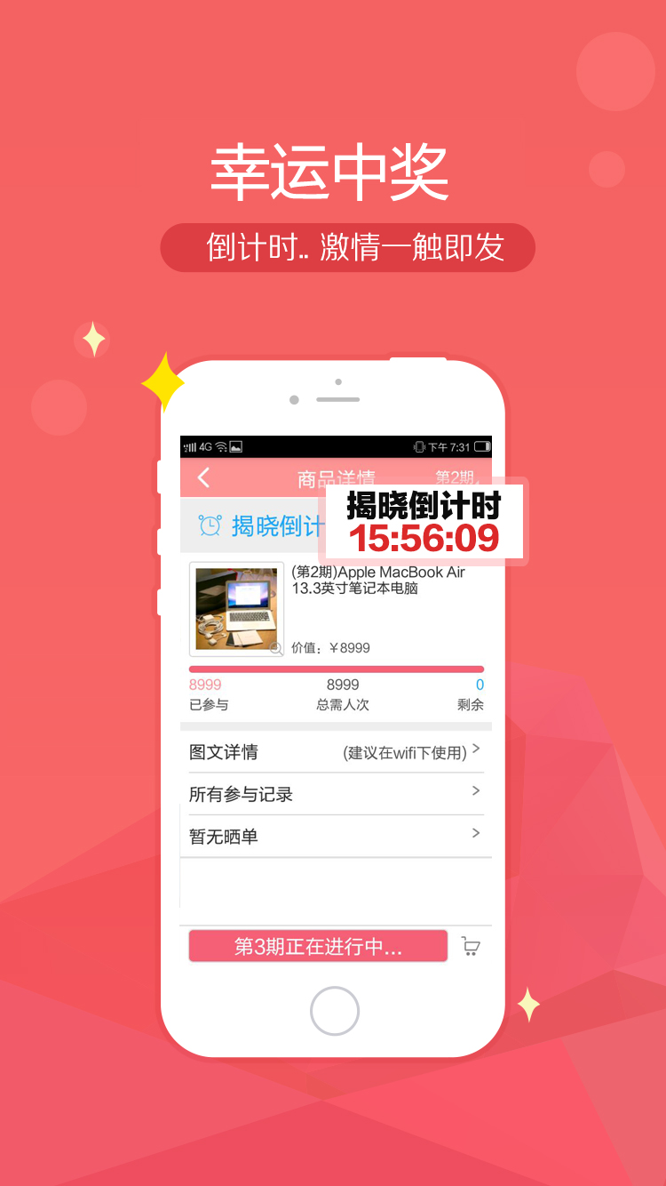 精品活動(dòng)app,一元就購,驚喜無限!。精品活動(dòng)app就是把一件商品平分成若干等份出售,每份1元,當(dāng)一件商品所有等份售出后抽取一條幸運(yùn)者,改幸運(yùn)者既可獲得此商品。 精品活動(dòng)app是深圳前海創(chuàng)品網(wǎng)絡(luò)有限公司旗下的專業(yè)P2P購物平臺(tái),在精品活動(dòng)app只需1元就有可能買到一件商品。