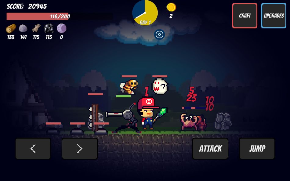 你要劈柴,挖礦,起防御低檔怪獸。你的世界夜晚一到,就是惡夢(mèng)的開始。你可以生存得幾多個(gè)晚上呢?在游戲里也可以通過撿到的金幣抽取新奇小寶物。