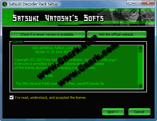 Satsuki Decoder Pack V5.1.0.0 安裝版 Satsuki Decoder Pack 是一個(gè)音頻和視頻的濾鏡/解碼包的合集。用于播放一些特殊格式的文件。Satsuki Decoder Pack包括視頻和音頻解碼器,由三部分組成:主體模塊、WM模塊和quicktime模塊。如果你沒(méi)有wmp9或以上版本,你需要安裝WM模塊;如果沒(méi) 有安裝quicktime或者ithune,則需要安裝 quicktime模塊。它的特點(diǎn)是只解碼而不添加解碼器,這樣既節(jié)省了磁盤空間又減少了代碼沖突的可能。