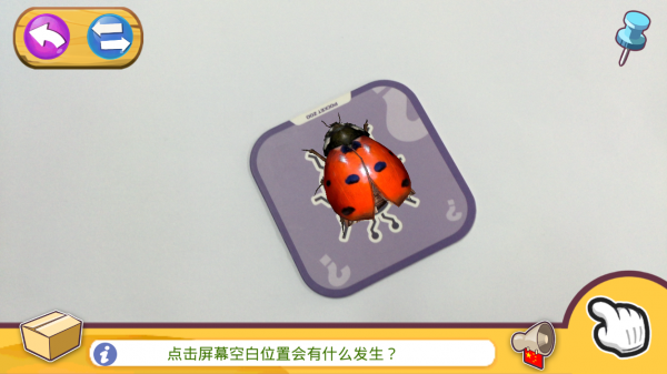 當把動物卡和道具卡同時放在攝像頭的取景范圍內(nèi)時,就可以喂動物吃東西、陪動物玩耍、殺死討厭的害蟲等等。
