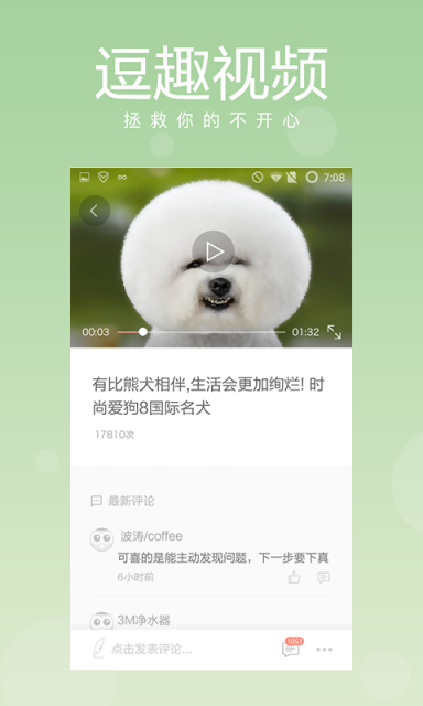 每日精選逗趣視頻,給你帶來(lái)歡樂(lè),拯救你的不開(kāi)心,更重要的是,這里沒(méi)有彈窗和浮層,從此跟廣告說(shuō)拜拜!