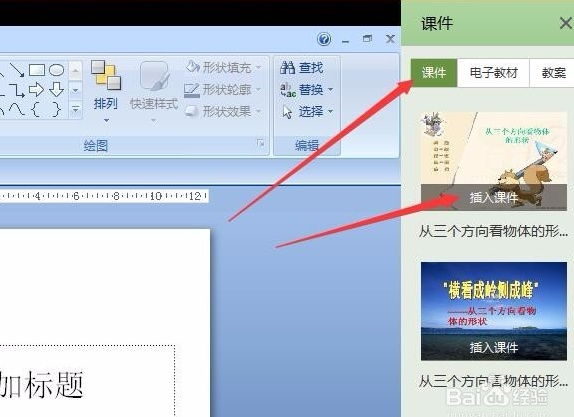系統(tǒng)要一些現(xiàn)成的資源可以直接導(dǎo)入使用,比如說課件,還有參考資源比如教案和電子教材。單擊插入可以導(dǎo)入課件。
