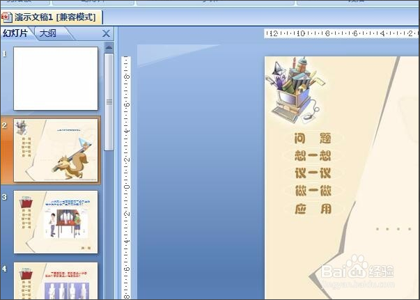 除了第一張幻燈片是空白幻燈片外,其余的都是剛剛導(dǎo)入的幻燈片,如果第一張不需要,可以刪除掉。