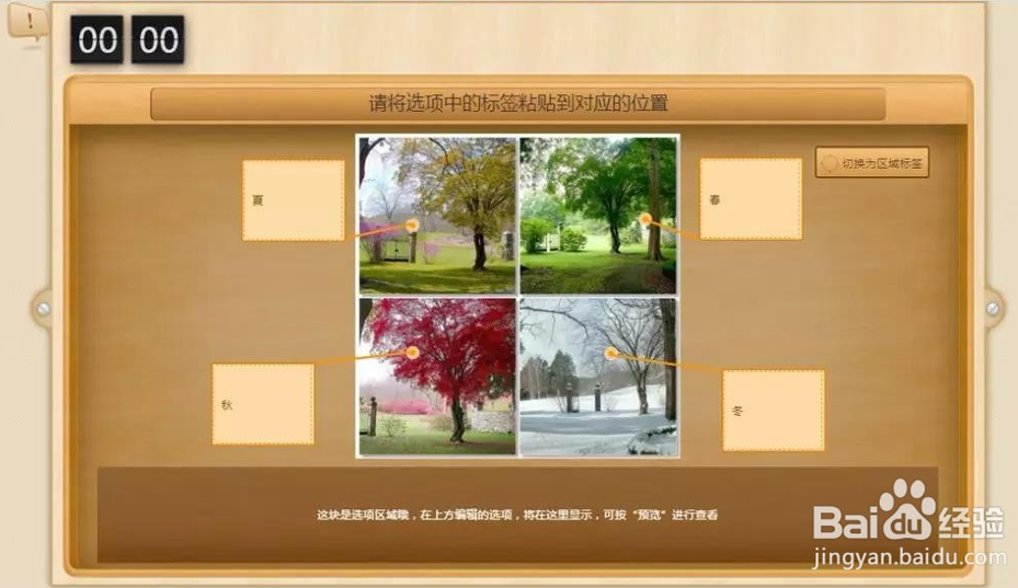 標(biāo)簽題,顧名思義給一張圖貼上標(biāo)簽。該題型以圖片為題干,設(shè)置多個(gè)標(biāo)簽選項(xiàng),學(xué)生將標(biāo)簽拖拽至圖片上的對(duì)應(yīng)標(biāo)簽點(diǎn)即可。