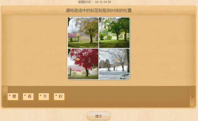 題目內(nèi)容不僅僅只是枯燥的文字,圖片、音頻、視頻等多媒體素材文件都OK。一張帶有故事性的圖片、一段古詩朗誦、一個(gè)視頻動(dòng)畫……比干巴巴的一段話來得有意思多了。吸引學(xué)生注意力的同時(shí),也讓課堂一下子活躍起來。