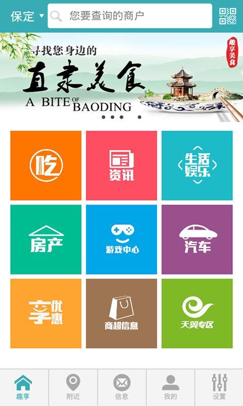 趣享是由保定市森和廣告?zhèn)髅接邢薰揪拇蛟?,移?dòng)互聯(lián)時(shí)代的本地生活服務(wù)平臺(tái),2013年5月1日正式上線,通過(guò)線上營(yíng)銷整合線下活動(dòng)及消費(fèi)的模式,為各類商家提供精準(zhǔn)營(yíng)銷的解決方案,為廣大用戶提供優(yōu)質(zhì)優(yōu)惠的商品信息和消費(fèi)體驗(yàn)。改變生活從此刻開始【更新日志】