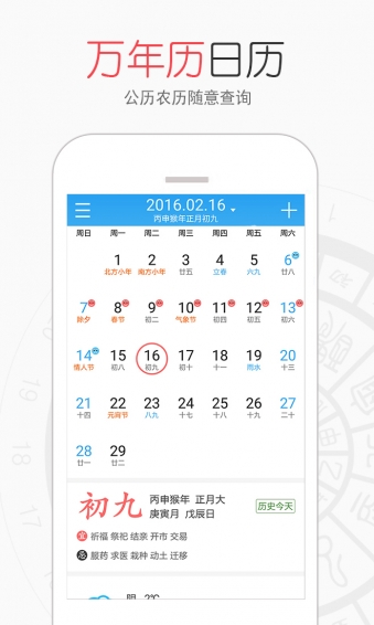 1.萬年歷功能,公歷農(nóng)歷隨意查詢;