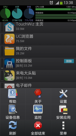 控制面板是一款專業(yè)的手機(jī)系統(tǒng)監(jiān)控軟件,該軟件界面簡(jiǎn)約、操作簡(jiǎn)單,具有任務(wù)管理、系統(tǒng)監(jiān)控、設(shè)備信息、應(yīng)用安裝等四大功能,用戶不僅可以便捷管理自己的手機(jī)內(nèi)存,同時(shí)還能隨意卸載不常用軟件,定期清理手機(jī)垃圾文件!