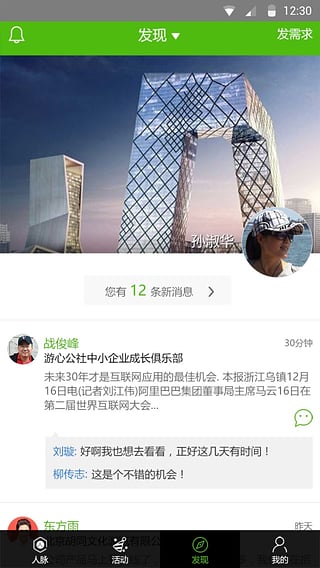 U脈app是一款關(guān)于社交圈子內(nèi)的資源對(duì)接及互動(dòng)平臺(tái),通過圈內(nèi)資源對(duì)接,產(chǎn)品宣傳,產(chǎn)品銷售,活動(dòng)報(bào)名,群內(nèi)互動(dòng)學(xué)習(xí),日常工作輔助管理來達(dá)到共同學(xué)習(xí)交流。