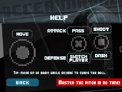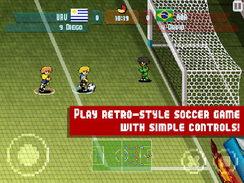 就如同游戲中的名字一樣,游戲采用了復古的像素風格的畫面設計,而且背景音樂也用的是電子樂風格。游戲乍看上去和小時候看經典足球動漫《足球小將》有那么一點類似,在游戲中玩家可以選擇國家隊征戰(zhàn)綠茵場,通過一場又一場的勝利最終站在世界之巔。游戲的操作方式非常簡單,只通過兩個按鈕可以完成游戲中的所有操作。