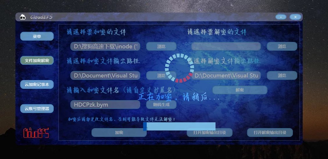 CloudEFS文件加密是一款綠色安全的文件加密軟件。該軟件加密解密的速度非???,只需5秒即可輕松加密解密,并且可支持跨平臺使用,有需要的朋友趕快拿下。