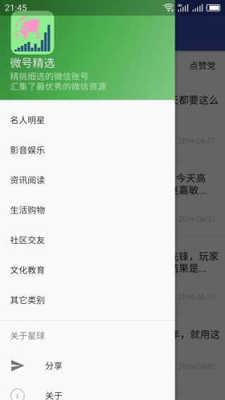 1、微星球,本星球聚集豐富的微信資訊以及權(quán)威的官方微信號!2、微星球,關注社會民生焦點問題,查看各方面的實時資訊!