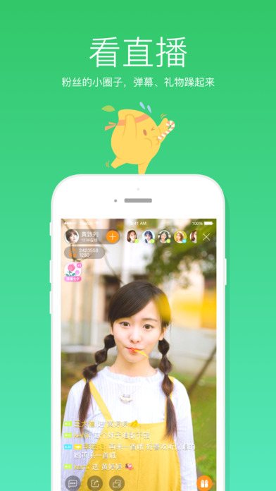 匯集千萬粉絲與最具人氣的偶像新星,歌神天后,惹天王競折腰的網(wǎng)絡(luò)紅人,會唱歌的廚師,能說會道的奇葩奇才,鮮肉男主播,萌妹御姐,過目不忘的路人丙...巨星成長之路從這里開始!【軟件特點】
