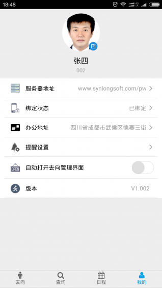 一款適合機(jī)關(guān)、企事業(yè)、醫(yī)院、學(xué)校等使用的人員去向動(dòng)態(tài)管理工具,可查詢和管理工作人員的當(dāng)前去向狀態(tài),預(yù)設(shè)定位和偏離辦公地點(diǎn)距離值后,可及時(shí)提醒工作人員變更自己的去向狀態(tài)。
