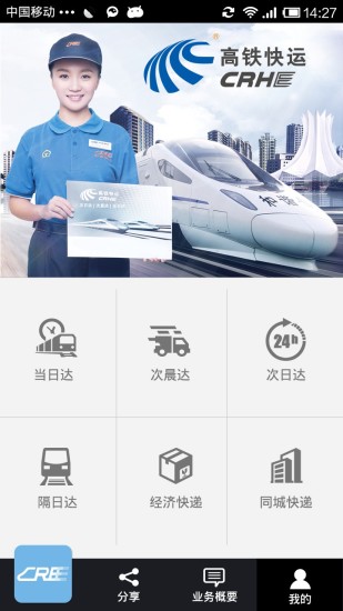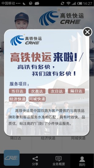 1.新增高鐵快運(yùn):具有時效快、品質(zhì)優(yōu)、標(biāo)注高的“門到門”小件快運(yùn)服務(wù)客戶可使用當(dāng)日達(dá)、次晨達(dá)、次日達(dá)、隔日達(dá)、經(jīng)濟(jì)快遞、同城快遞下單寄件